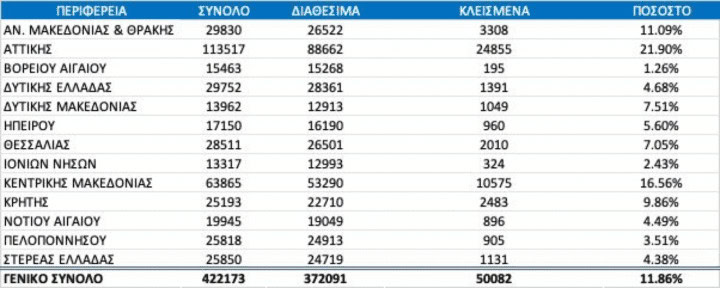 Στον πίνακα φαίνεται ένα στατιστικό δείγμα ανά περιφέρεια