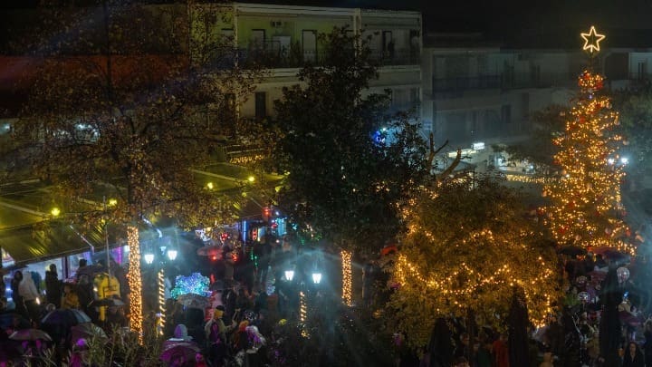 Την εκδήλωση άνοιξαν παιδικές χορωδίες των σχολείων και παιδικό χορευτικό του Εργαστηρίου Χορού “Χορός και Έκφραση”. Αμέσως μετά ο Δήμαρχος Λευτέρης Αβραμόπουλος προχώρησε στη φωταγώγηση του Δέντρου έχοντας στο πλευρό του μικρούς φίλους των χορωδιών των σχολείων της πόλης. Μετά τη φωταγώγηση τα πυροτεχνήματα φώτισαν τον ουρανό της πόλης γεμίζοντας φως και δίνοντας μια ακόμη εορταστική νότα. Η βραδιά συνεχίστηκε με τον κόσμο να διασκεδάζει με τις μουσικές μελωδίες του συγκροτήματος των “ΜΠΛΕ”.