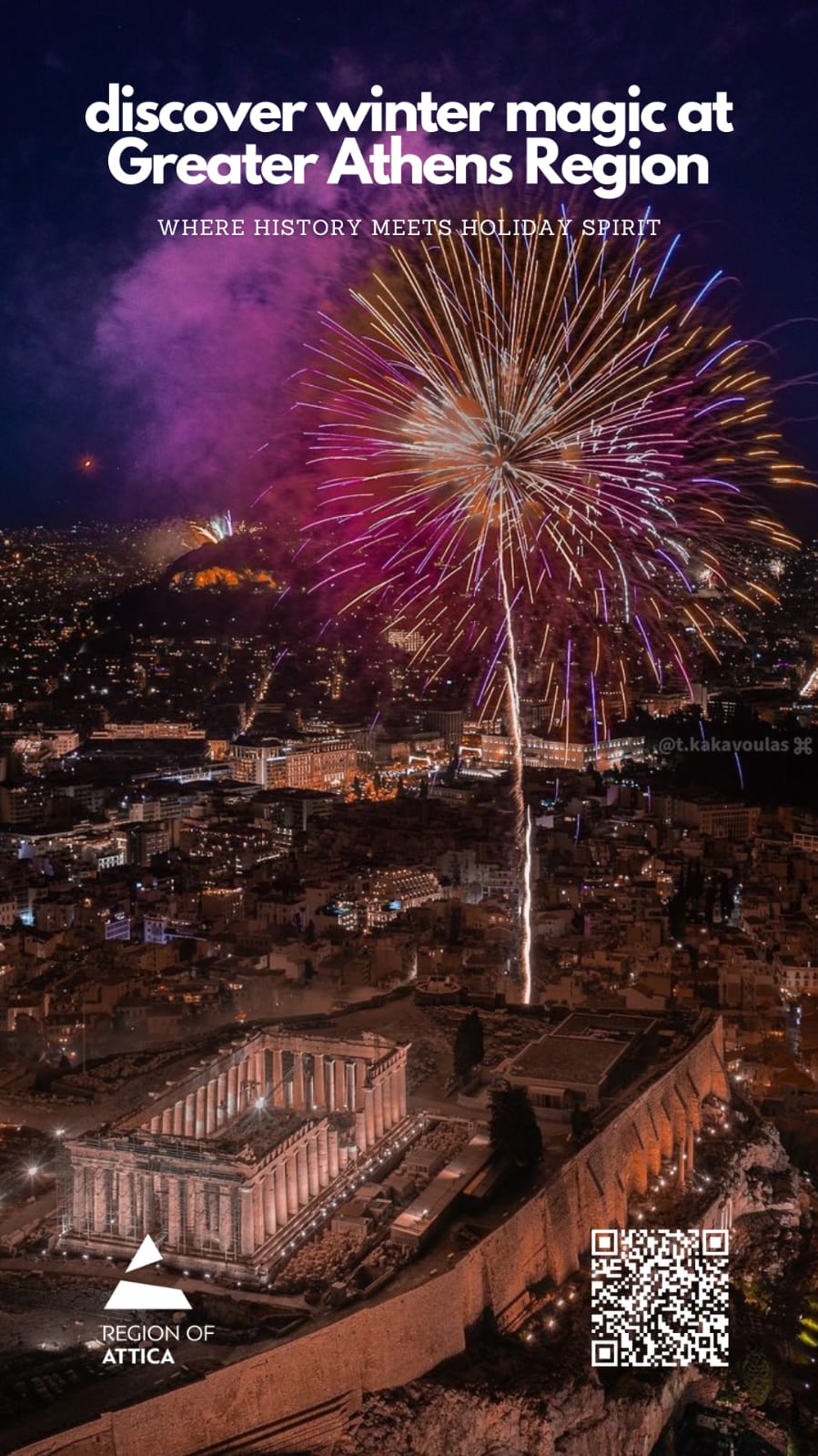 Η Περιφέρεια Αττικής απευθύνει ανοιχτό κάλεσμα σε όσους δεν έχουν επισκεφθεί την πρωτεύουσα της Ελλάδας τον χειμώνα να σπεύσουν να το κάνουν. Η χριστουγεννιάτικη Αθήνα, «ντυμένη» στα γιορτινά της, είναι πανέμορφη και η ψηφιακή καμπάνια που «τρέχει» από την Περιφέρεια Αττικής σκοπό έχει να αναδείξει την Αθήνα τα Χριστούγεννα, η οποία μπορεί να μετατραπεί σε ένα εορταστικό τοπόσημο.