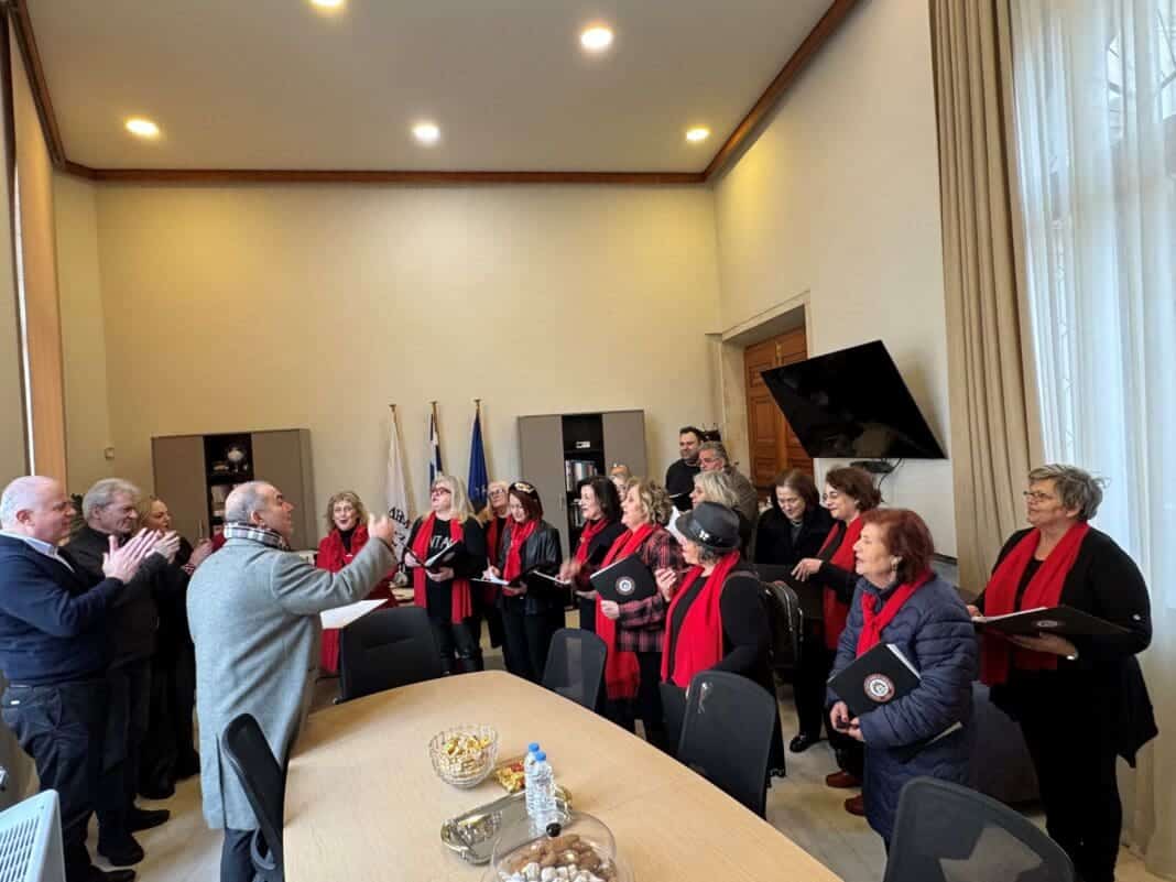 Με πρωτοχρονιάτικες μικρασιάτικες μελωδίες πλημμύρισε χθες 30-12-2024 η Λότζια, από τα κάλαντα που έψαλαν στο Δήμαρχο Ηρακλείου Αλέξη Καλοκαιρινό ο Σύλλογος Αλατσατιανών και ο Πολιτιστικός Σύλλογος Φορτέτσας παρουσία του Αντιδημάρχου Οικονομικών & Ανάπτυξης της Τοπικής Οικονομίας Γιώργου Αγριμανάκη, της Αντιδημάρχου Διοίκησης και Προγραμματισμού Γιάννας Καλονάκη και της Γενικής Γραμματέως του Δήμου Μαρίας Σκραφνάκη.
