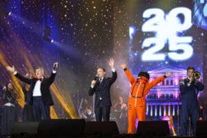 Με ενθουσιασμό, μουσική και χορό, ο Δήμος Αθηναίων καλωσόρισε το 2025 στην Πλατεία Συντάγματος με την «Ταράτσα του Χρόνου» του Φοίβου Δεληβοριά και τη συμμετοχή της Νατάσσας Μποφίλιου, της Μάρθας Φριντζήλα και του Θανάση Αλευρά, σε σκηνοθεσία του Άγγελου Τριανταφύλλου. Το κοινό ταξίδεψε στον χρόνο, από το 1945 έως το 2025, μέσα από τραγούδια, προβολές και εντυπωσιακές ερμηνείες με φαντασμαγορικά σκηνικά, κοστούμια και χορογραφίες, σε μια ξεσηκωτική και άκρως πρωτότυπη μουσική αναδρομή αφιερωμένη στην Αθήνα.
