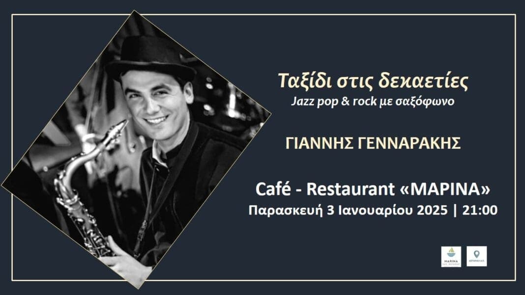 Σήμερα Παρασκευή 3 Ιανουαρίου, στις 21:00 ο Γιάννης Γενναράκης με το σαξόφωνό του θα κάνει ένα «Ταξίδι στις δεκαετίες» με μία επιλογή τραγουδιών Jazz, Pop, Rock.