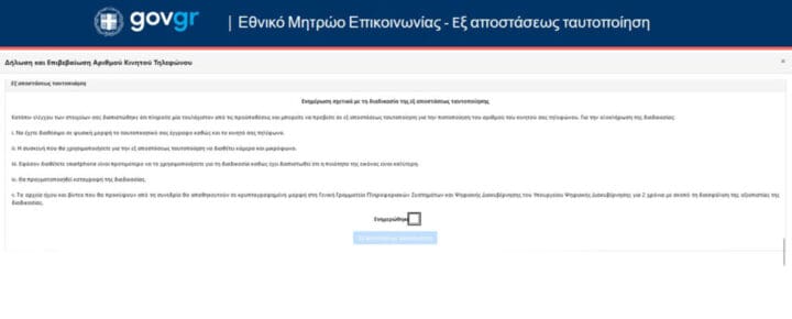 Πρόκειται για μια υπηρεσία, η οποία προσφέρει ασφαλή και γρήγορη εξυπηρέτηση ιδιαίτερα για περιπτώσεις που μέχρι σήμερα δεν ήταν εφικτή η ταυτοποίηση μέσω Πιστωτικού Ιδρύματος ή Παρόχου Κινητής Τηλεφωνίας, όπως για πολίτες που έχουν οικογενειακά και εταιρικά πακέτα σε Παρόχους Κινητής Τηλεφωνίας και κατοίκους εξωτερικού. Σημειώνεται ότι δεν θα απαιτείται φυσική παρουσία σε ΚΕΠ ή Προξενική Αρχή. Υπενθυμίζεται ότι η καταχώριση του κινητού στο ΕΜΕπ είναι υποχρεωτική βάσει θεσμικού πλαισίου.