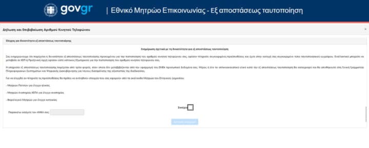 Πρόκειται για μια υπηρεσία, η οποία προσφέρει ασφαλή και γρήγορη εξυπηρέτηση ιδιαίτερα για περιπτώσεις που μέχρι σήμερα δεν ήταν εφικτή η ταυτοποίηση μέσω Πιστωτικού Ιδρύματος ή Παρόχου Κινητής Τηλεφωνίας, όπως για πολίτες που έχουν οικογενειακά και εταιρικά πακέτα σε Παρόχους Κινητής Τηλεφωνίας και κατοίκους εξωτερικού. Σημειώνεται ότι δεν θα απαιτείται φυσική παρουσία σε ΚΕΠ ή Προξενική Αρχή. Υπενθυμίζεται ότι η καταχώριση του κινητού στο ΕΜΕπ είναι υποχρεωτική βάσει θεσμικού πλαισίου.