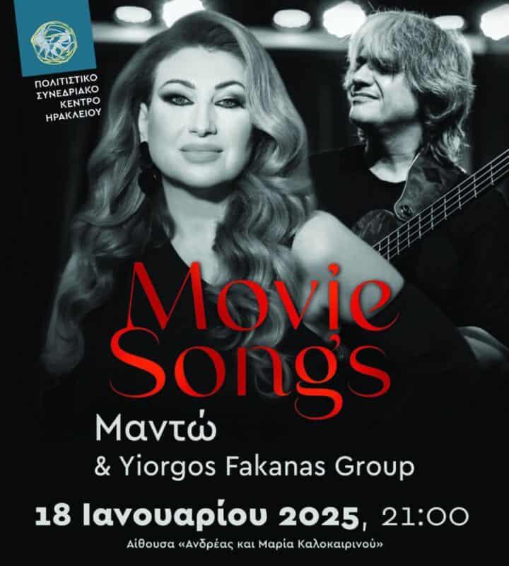 Τα σημαντικότερα κινηματογραφικά τραγούδια του παγκόσμιου σινεμά έρχονται στη σκηνή του ΠΣΚΗ με την υπέροχη φωνή της Μαντώς και τον κορυφαίο Jazz-Fusion group της χώρας μας, τον Yiorgos Fakanas Group YFG.