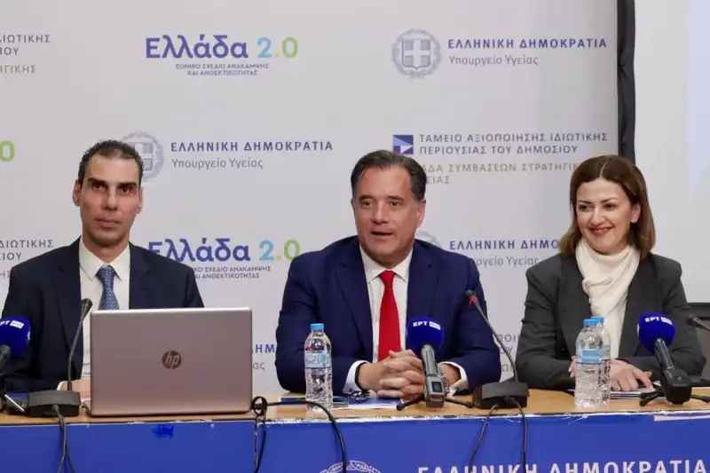 Ο Υπουργός Υγείας Άδωνις Γεωργιάδης, η Αναπληρώτρια Υπουργός Υγείας Ειρήνη Αγαπηδάκη και οι Υφυπουργοί Υγείας Μάριος Θεμιστοκλέους και Δημήτρης Βαρτζόπουλος παραχώρησαν χθες, Δευτέρα 13 Ιανουαρίου 2025, συνέντευξη τύπου με θέμα την εξειδίκευση των μέτρων για τη βελτίωση της εφημέρευσης στα νοσοκομεία της Αττικής (α’ μέρος) καθώς και την παρουσίαση νέων πρωτοβουλιών και αναβαθμίσεις στον τομέα της Υγείας με στόχο τη βελτίωση της προσβασιμότητας, αποτελεσματικότητας και εξυπηρέτησης των πολιτών (β’ μέρος). Το παρών έδωσαν η Γενική Γραμματέας Υπηρεσιών Υγείας Λίλιαν Βιλδιρίδη, η Γενική Γραμματέας Δημόσιας Υγείας Φωφώ Καλύβα, ο Γενικός Γραμματέας Στρατηγικού Σχεδιασμού Άρης Αγγελής και η Διευθύνουσα Σύμβουλος της ΗΔΙΚΑ, Νίκη Τσούμα.