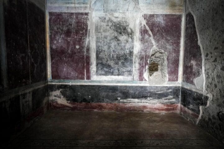 Το συγκρότημα των λουτρών βρίσκεται στο εσωτερικό μιας μεγάλης κατοικίας που ανακαλύφθηκε τα τελευταία δύο χρόνια στη διάρκεια ανασκαφών που έφεραν στο φως την πολύπλευρη κοινωνική ζωή της πλούσιας πόλης προτού θαφτεί από τον Βεζούβιο κάτω από ένα πυκνό, αποπνικτικό στρώμα τέφρας.