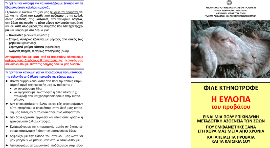 Παράλληλα, απαγορεύτηκε η έξοδος από τα όρια της Π.Ε. Ηρακλείου ζώντων αιγοπροβάτων, κρεάτων, ζωοτροφών και κάθε υλικού από τα ζώα που μπορεί να μεταδώσει την ευλογιά.