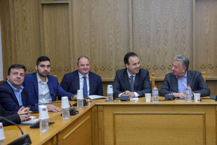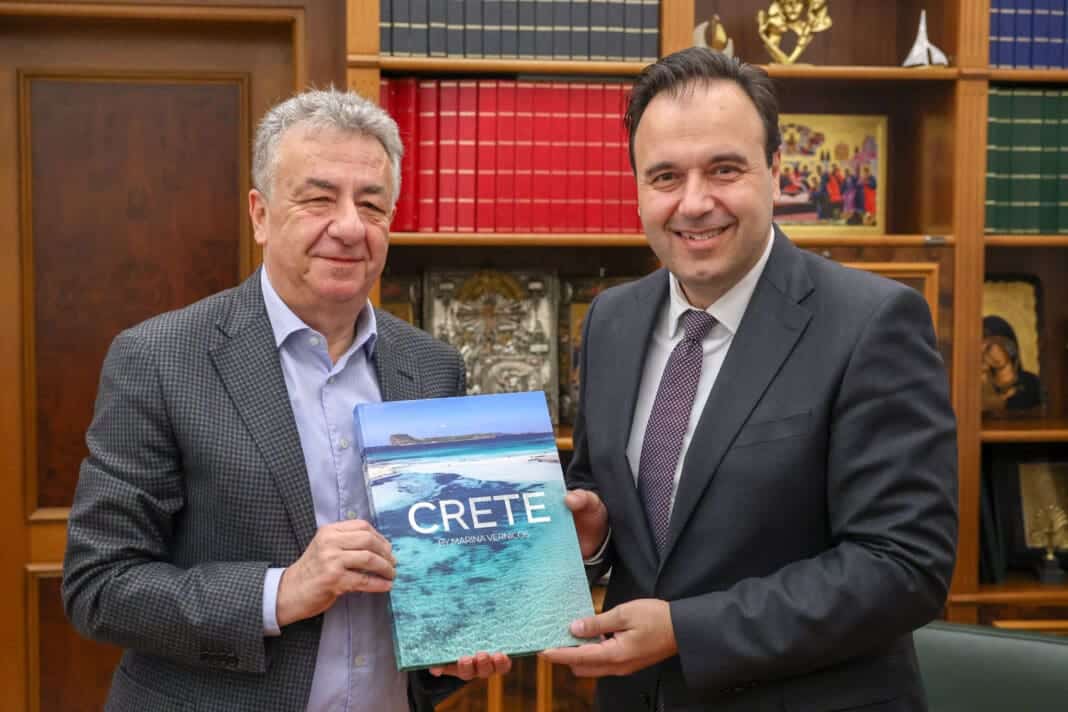 Κατά την επίσκεψή του στην Περιφέρεια Κρήτης ο Υπουργός είχε συνάντηση με τον Περιφερειάρχη, παρουσία των βουλευτών Ηρακλείου Μάξιμου Σενετάκη και Κώστα Κεφαλογιάννη, του Γενικού Γραμματέα Κωνσταντίνου Καράτζαλου και στελεχών του Υπουργείου. Από την Περιφέρεια παραβρέθηκαν ο Αναπληρωτής Περιφερειάρχης Γιώργος Πιτσούλης, οι Αντιπεριφερειάρχες Ηρακλείου Νίκος Συριγωνάκης, Πολιτισμού Γεωργία Μηλάκη, Αγροτικής Οικονομίας Σταύρος Τζεδάκης, κλιματικής Αλλαγής, Γιάννης Αναστασάκης και ο εντεταλμένος Περιφερειακός Σύμβουλος διασύνδεσης με τα Πανεπιστήμια και Ερευνητικά Ιδρύματα Γιώργος Ματαλλιωτάκης.