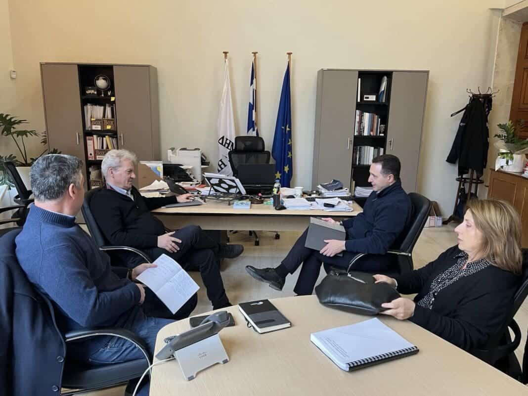 Συνάντηση με τον Διοικητή της Υπηρεσίας Πολιτικής Αεροπορίας Γιώργο Σαναούτσο, τον Αερολιμενάρχη Ηρακλείου Ιάκωβο Ουρανό και την Τμηματάρχη του Διοικητικού και Οικονομικού Τμήματος του Αεροδρομίου «Νίκος Καζαντζάκης» Άννα Πουκαμισά είχε ο Δήμαρχος Ηρακλείου Αλέξης Καλοκαιρινός στη Λότζια,  το μεσημέρι της Τετάρτης 5/2.