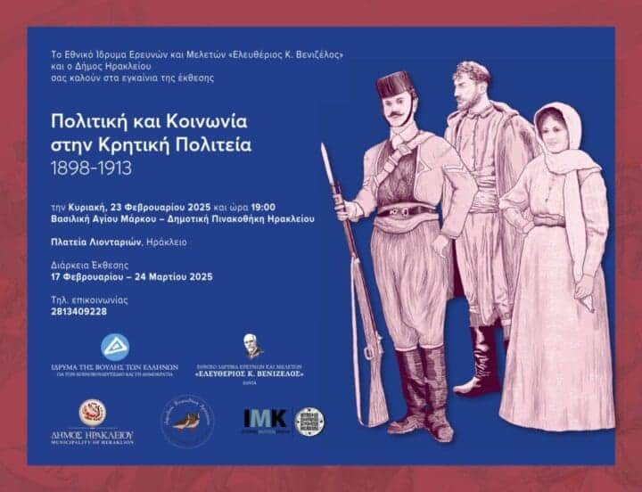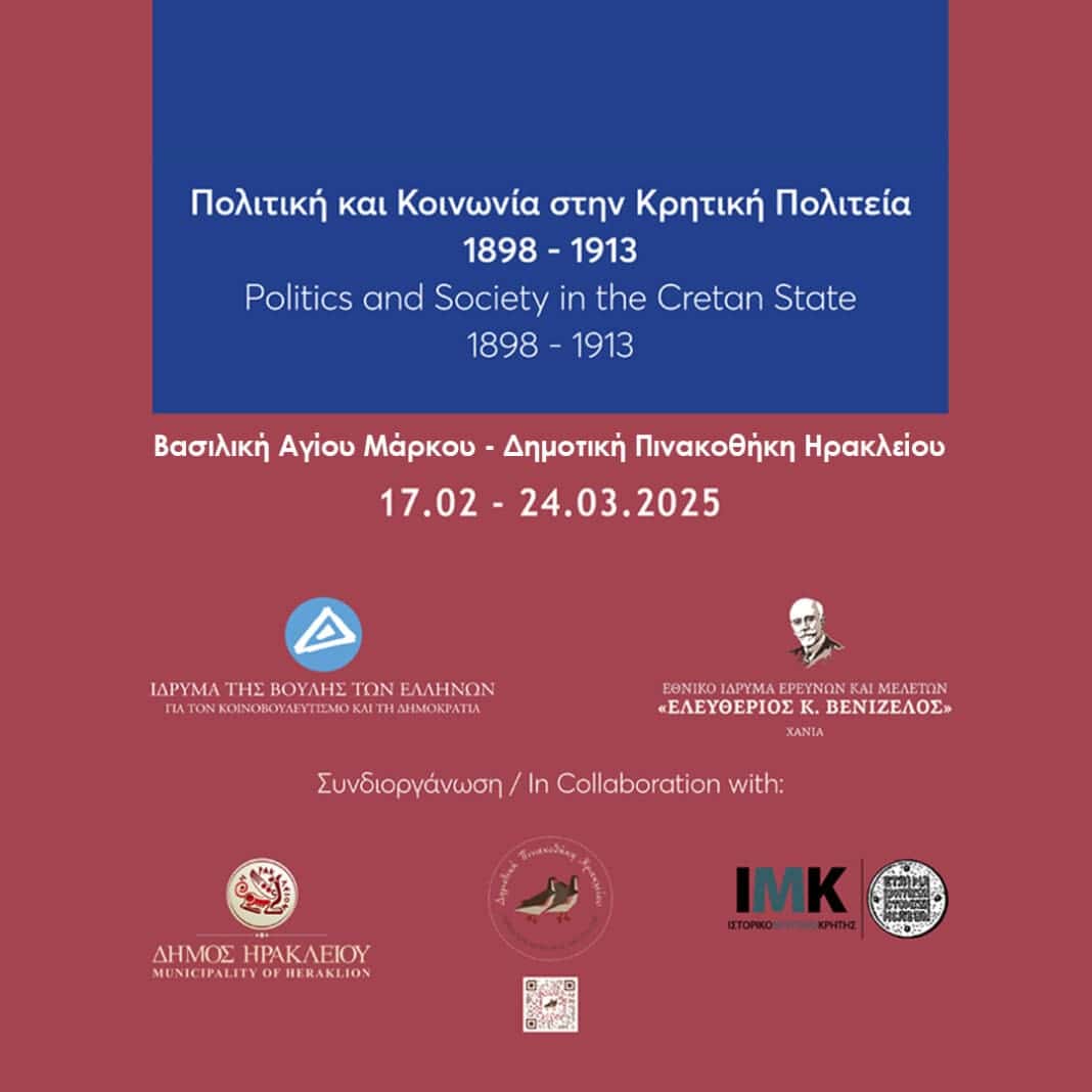 Η έκθεση «Πολιτική και Κοινωνία στην Κρητική Πολιτεία 1898-1913» ανοίγει τις πύλες της για το κοινό στις 17 Φεβρουαρίου και εγκαινιάζεται την Κυριακή 23 Φεβρουαρίου στις 19:00 στη Βασιλική του Αγίου Μάρκου – Δημοτική Πινακοθήκη Ηρακλείου.