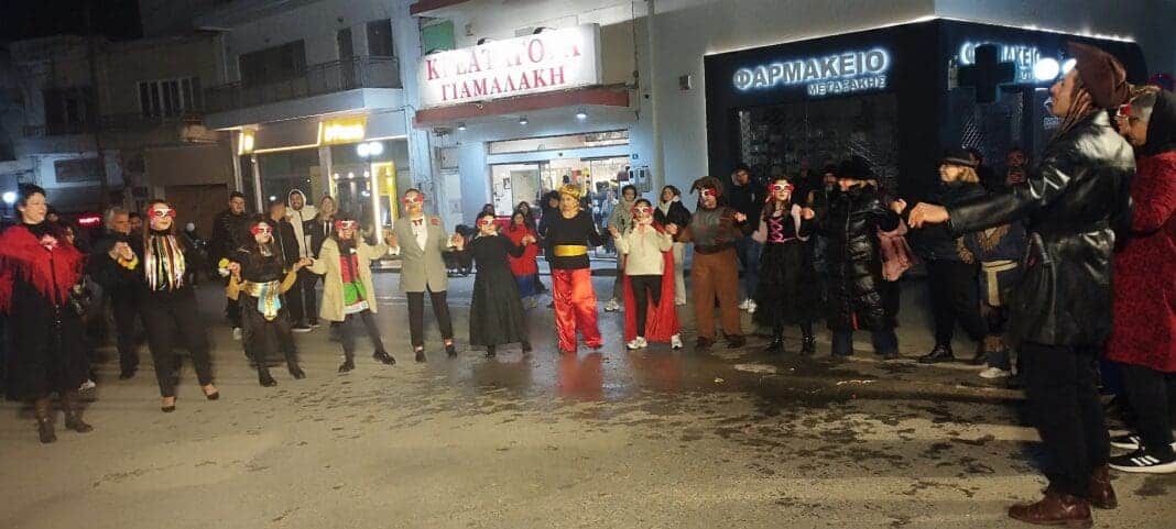 Έξω από τα εμπορικά καταστήματα του Αρκαλοχωρίου, οι ψησταριές και το κρασί είχαν την τιμητική τους ενώ πραγματοποιήθηκε και μίνι καρναβαλική παρέλαση, την οποία χάρηκαν μικροί και μεγάλοι. Οι παραδοσιακοί, αποκριάτικοι χοροί από την ομάδα “Γέρανος” έκλεψαν τις εντυπώσεις ενώ το δημιουργικό παιχνίδι για παιδιά με τη Σοφία Σωμαράκη έβαλε επίσης τα μικρά παιδιά στην αποκριάτικη ατμόσφαιρα.