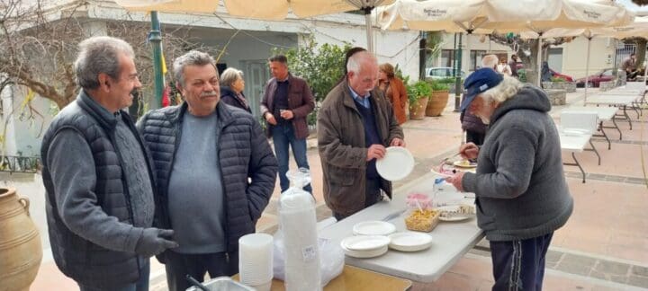 Η πλατεία γέμισε από χρώματα, χαμόγελα, σαρακοστιανά εδέσματα φτιαγμένα από αγάπη και μεράκι και άφθονο κρασί. Το υπαίθριο γλέντι ξεσήκωσε όλο τον κόσμο με τη μουσική του dj Δημήτρη Σταράκη ενώ εκεί βρέθηκε και ο Δήμαρχος Μινώα Πεδιάδας Βασίλης Κεγκέρογλου, όπως και άλλα στελέχη της Δημοτικής Αρχής.