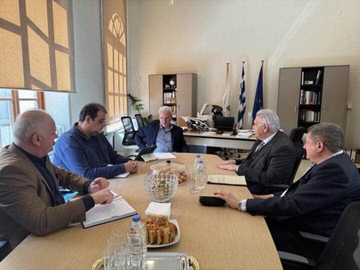 Με τον Πρόεδρο του Επιμελητηρίου Ηρακλείου Βαγγέλη Καρκανάκη και τον Τεχνικό Σύμβουλο του Γιώργο Καραπιδάκη συναντήθηκε ο Δήμαρχος Ηρακλείου Αλέξης Καλοκαιρινός, παρουσία του Αντιδημάρχου Οικονομικών & Τουρισμού Γιώργου Αγριμανάκη και του Ειδικού Συμβούλου του Δημάρχου Σπύρου Δοκιανάκη.