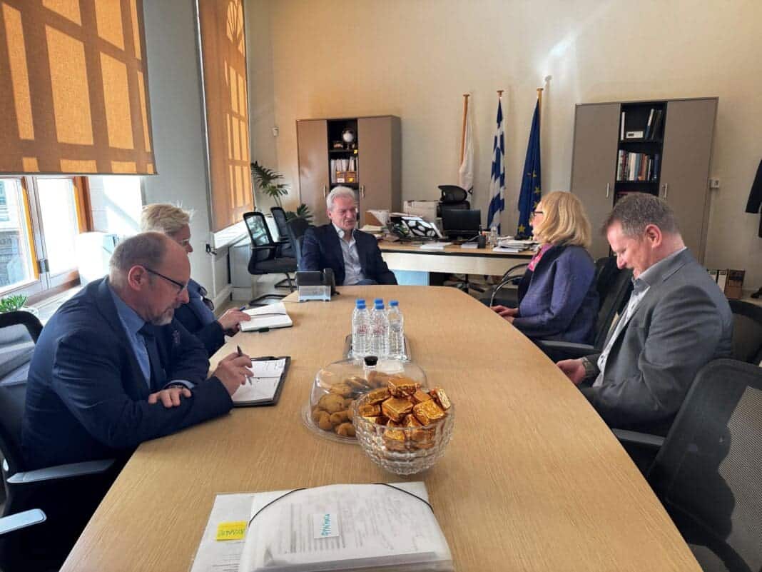 Συνάντηση με τον Δήμαρχο Ηρακλείου Αλέξη Καλοκαιρινό στη Λότζια είχε η Πρέσβειρα της Αυστρίας στην Ελλάδα Gerda Vogl, συνοδευόμενη από τους Στρατιωτικούς και Αστυνομικούς Ακόλουθους της Πρεσβείας στην Ελλάδα, Bernd Skaza, Rudolf Hermann και Dalia El-Hennawi το πρωί της Τετάρτης 12/3.