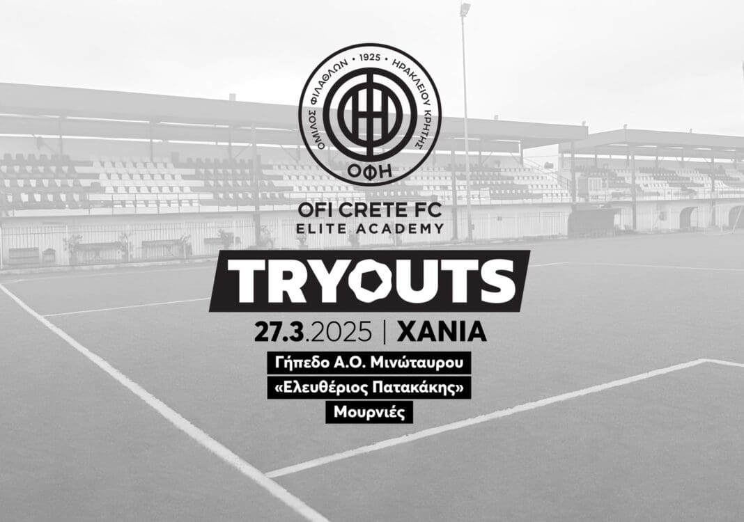 Η ΠΑΕ ΟΦΗ 1925, διοργανώνει δοκιμαστικές προπονήσεις (tryouts) την Πέμπτη 27/3 στα Χανιά, για την επιλογή νεαρών ποδοσφαιριστών που θα στελεχώσουν τις ομάδες της Elite Ακαδημίας, για την σεζόν 2025-26.