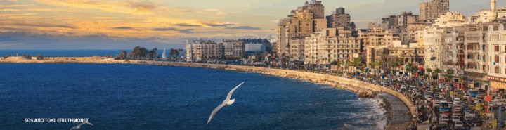 Η Αλεξάνδρεια, η πόλη-σύμβολο του ελληνικού μεγαλείου, σήμερα χάνει την ομορφιά και τη δύναμή της εξαιτίας μερικών δεκαετιών κακοδιοίκησης, αλλά και άρνησης των Αρχών να αποδεχτούν την κλιματική αλλαγή».
