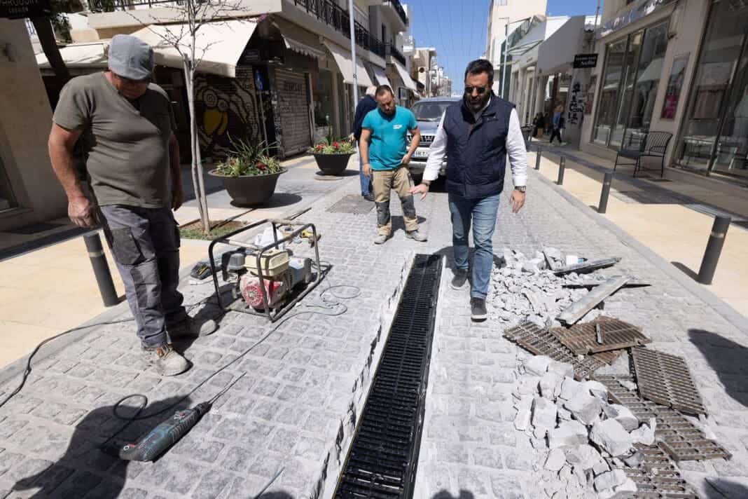 Παρακαλούνται οι διερχόμενοι να ακολουθούν τις σημάνσεις και να αποφεύγουν να πατούν επάνω στις σχάρες μέχρι να ολοκληρωθούν οι εργασίες και για τουλάχιστον μια ή δυο ημέρες μετά, ώστε να μην δημιουργηθούν στο μέλλον αντίστοιχα προβλήματα.