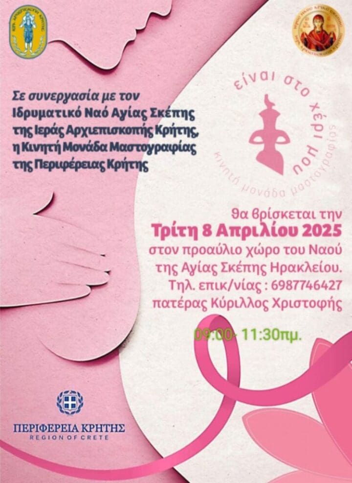 Αρχική ΚΡΗΤΗ Δωρεάν εξέταση μαστογραφίας στην Αγία Σκέπη ΚΡΗΤΗ Δωρεάν εξέταση μαστογραφίας στην Αγία Σκέπη 03/04/2025 FacebookTwitterPinterestWhatsApp ΣΤΗΝ ΙΔΙΑ ΚΑΤΗΓΟΡΙΑΔΙΑΒΑΣΤΕ ΕΠΙΣΗΣ Συνεχίζονται σε 16 σταθμούς σε όλη την Κρήτη οι απολυμάνσεις στο πλαίσιο των προληπτικών μέτρων για την ευλογιά του προβάτου Κρήτη – Γαστρονομική Περιφέρεια της Ευρώπης 2026 Παράταση προθεσμίας για τον Παγκρήτιο Διαγωνισμό Γαστρονομικού Δώρου Ο Οργανισμός Λιμένος Ηρακλείου στη διεθνή έκθεση μεταφορών και εφοδιαστικής αλυσίδας στη Βερόνα ΔΙΑΒΑΣΤΕ ΕΠΙΣΗΣ Νεοφυείς επιχειρήσεις: Πώς οι χώροι coworking υποστηρίζουν την ανάπτυξη και την... 17/03/2026 Μειωμένα τεκμήρια διαβίωσης, αλλά και μισός ο ΕΝΦΙΑ για χιλιάδες μικρούς... 17/03/2026 Υπ. Ψηφιακής Διακυβέρνησης: Η Ελλάδα στον πυρήνα των ψηφιακά ώριμων κρατών... 17/03/2026 Πιλοτική λειτουργία της Ψηφιακής Τράπεζας Γης – Εκκινεί η καταχώριση τίτλων... 17/03/2026 Αναβάθμιση της Μονάδας Καθαρισμού Αποβλήτων του Βιομηχανικού Πάρκου Ηρακλείου σε 3βάθμια... 17/03/2026