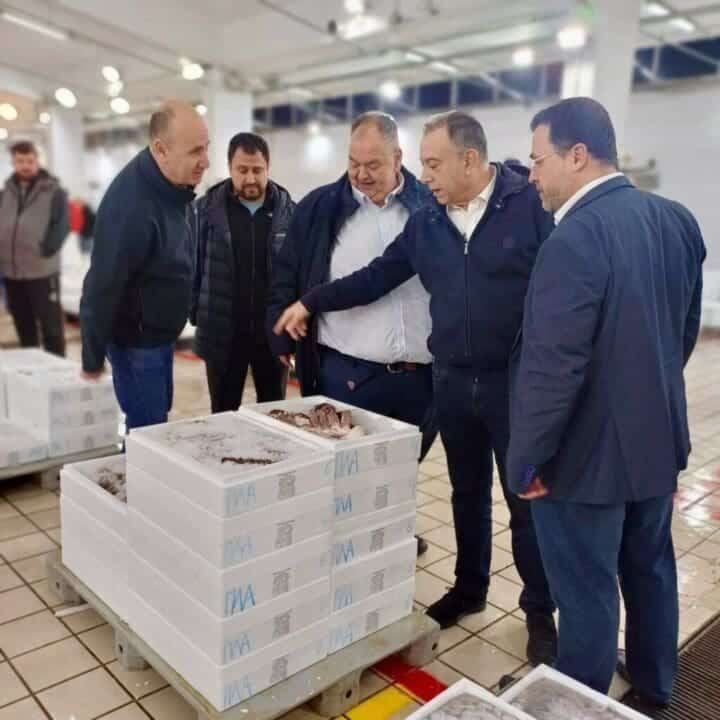 Επίσκεψη στην ιχθυόσκαλα της Νέας Μηχανιώνας στη Θεσσαλονίκη πραγματοποίησε χθες τα ξημερώματα ο Υφυπουργός Αγροτικής Ανάπτυξης και Τροφίμων, Χρήστος Κέλλας και ο ΓΓ του Υπουργείου, Γιώργος Στρατάκος, προκειμένου να συζητήσουν με τους αλιείς για τα προβλήματα που αντιμετωπίζουν στην εφαρμογή της Κοινοτικής Οδηγίας σχετικά με τον τρόπο ζύγισης των αλιευμάτων τους και την χρήση πιστοποιημένων μηχανών ζύγισης.