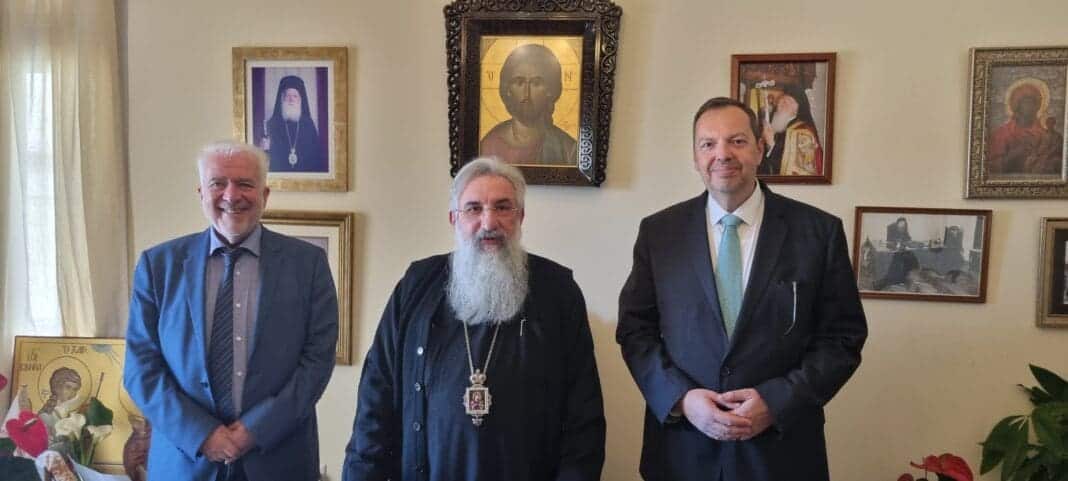 Την Παρασκευή 4 Απριλίου 2025, έγινε συνάντηση στην Ιερά Αρχιεπισκοπή Κρήτης μεταξύ του Σεβασμιότατου Αρχιεπισκόπου Κρήτης κ. κ. Ευγενίου, του Διευθύνοντος  Συμβούλου του ΟΛΗ κ. Μηνά Παπαδάκη και του Διευθυντή του Εργαστηρίου Παράκτιας & Θαλάσσιας Έρευνας του ΙΤΕ κ. Νίκου Καμπάνη, με αντικείμενο την συνεργασία για την προώθηση του παράκτιου και θαλάσσιου Γραμματισμού στην Κρήτη. Στην συνάντηση παραβρέθηκε και ο Θεοφιλέστατος Επίσκοπος Κνωσσού κ. Μεθόδιος, ο οποίος θα συμμετέχει στην συγκεκριμένη δράση εκ μέρους της Αρχιεπισκοπής.