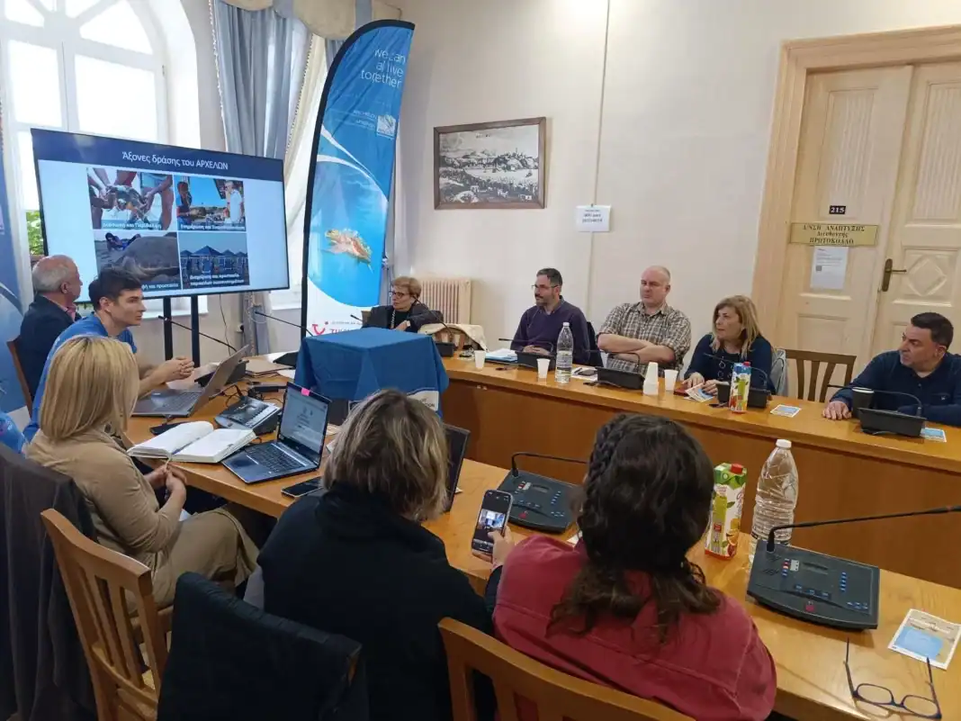 Τους παριστάμενους καλωσόρισε στη σύσκεψη η Αντιπεριφερειάρχης Ρεθύμνης κα Μαρία Λιονή με ένα σύντομο χαιρετισμό και στη συνέχεια ο Προϊστάμενος του Τμήματος Περιβάλλοντος και Υδροοικονομίας κος Μάνος Νικολουδακης παρουσίασε τα διαχειριστικά μέτρα προστασίας της θαλάσσιας χελώνας caretta caretta σύμφωνα με την κείμενη περιβαλλοντική νομοθεσία. Ακολούθως οι εκπρόσωποι του Συλλόγου «Αρχέλων» έκαναν δύο παρουσιάσεις σχετικά με τα διαχειριστικά μέτρα προστασίας και με καλές πρακτικές και παραδείγματα και ακολούθησαν τοποθετήσεις από την Διευθύντρια Περιβάλλοντος του Δήμου Ρεθύμνης κα Γκολφινόπουλου, τον προϊστάμενο της Κτηματικής Υπηρεσίας Ρεθύμνου κ. Δασκαλάκη, τον Πρόεδρο του Συλλόγου Ξενοδόχων Ρεθύμνου κ. Τσακαλάκη και τον Λειτουργικό Διευθυντή της Grecotel κ. Καλαϊτζιδάκη.