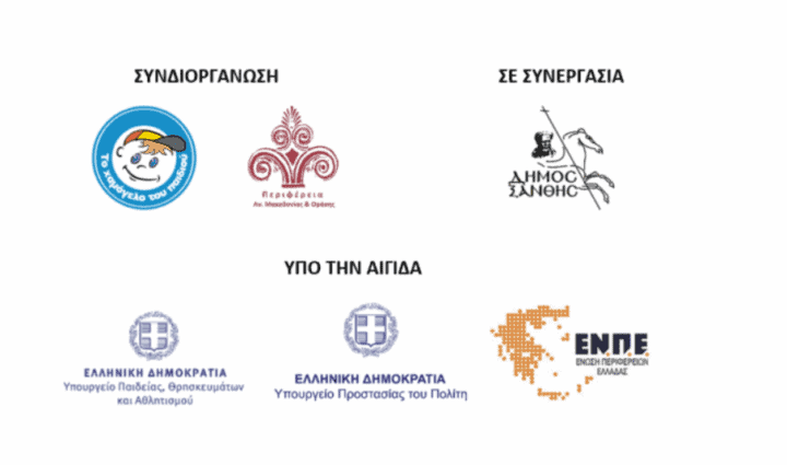 - υπό την αιγίδα του Υπουργείου Παιδείας, Θρησκευμάτων και Αθλητισμού, του Υπουργείου Προστασίας του Πολίτη, της Ένωσης Περιφερειών Ελλάδας