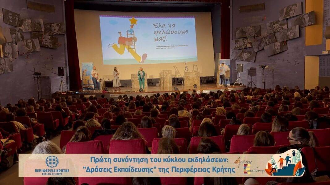 Με μεγάλη επιτυχία και ευρεία συμμετοχή της εκπαιδευτικής κοινότητας ολοκληρώθηκε ο κύκλος των «Δράσεων Εκπαίδευσης» που διοργάνωσε η Περιφέρεια Κρήτης από τις 22 Μαρτίου έως και τις 2 Απριλίου 2025, σε συνεργασία με τους Συλλόγους Εκπαιδευτικών Πρωτοβάθμιας Εκπαίδευσης Ηρακλείου «Δομήνικος Θεοτοκόπουλος», «Νίκος Καζαντζάκης», «Φαιστός» και την ΕΛΜΕ Ηρακλείου.