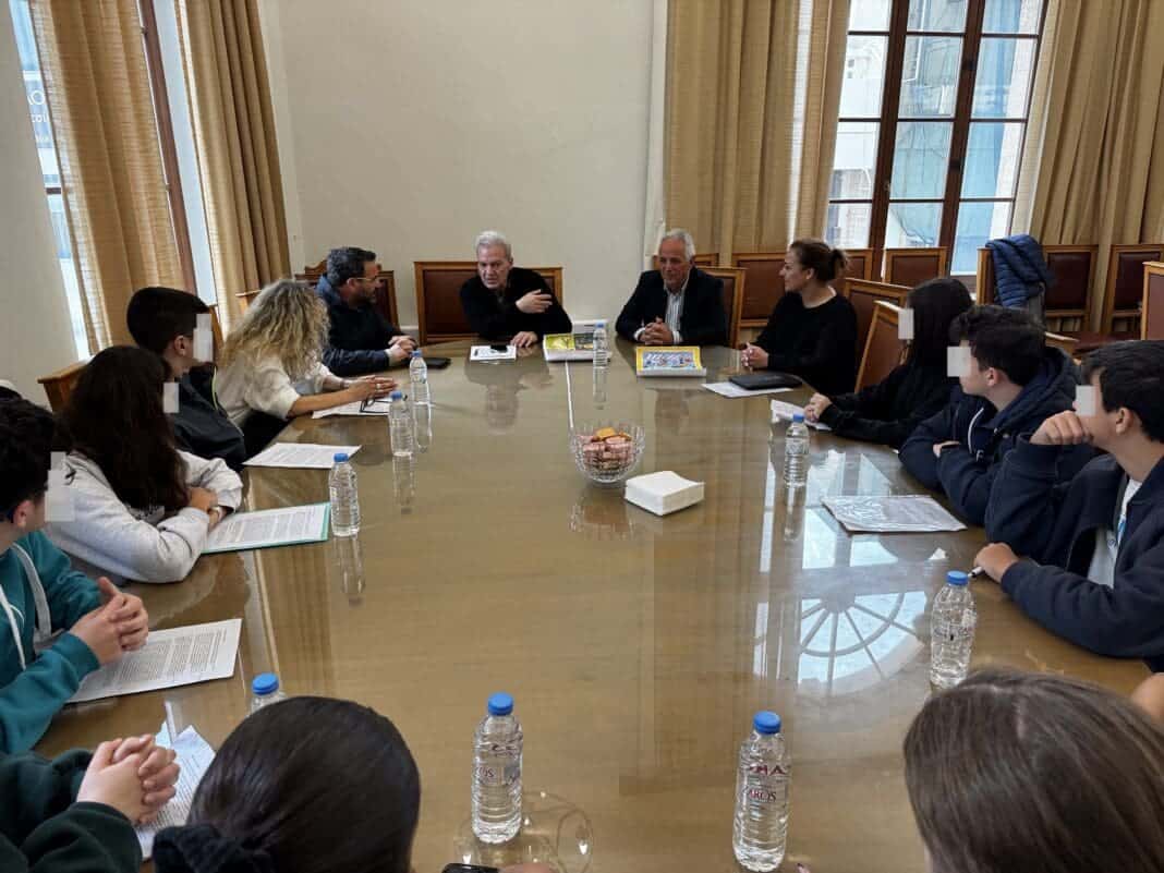 Μια διαφορετική «συνάντηση εργασίας» είχε ο Δήμαρχος Ηρακλείου Αλέξης Καλοκαιρινός με τις ομάδες ρητορικής και κινηματογράφου του 8ου Γυμνασίου Ηρακλείου που βρίσκεται στα Καμίνια, παρουσία των Αντιδημαρχών Τεχνικών Υποδομών και Βιώσιμης Κινητικότητας Γιώργου Σισαμάκη και Παιδείας Αντώνη Περισυνάκη το πρωί της Τετάρτης 9/4 στη Λότζια.
