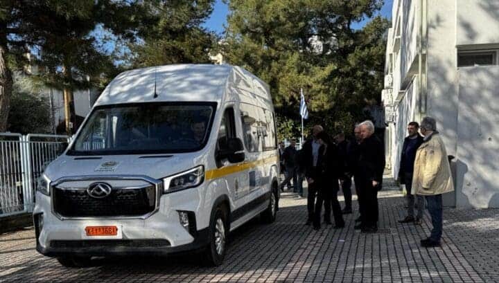 Στον Άγιο Μύρωνα βρέθηκαν νωρίς το πρωί της Πέμπτης 10/4 ο Δήμαρχος Ηρακλείου Αλέξης Καλοκαιρινός με τους Αντιδημάρχους Αναπτυξιακού Προγραμματισμού & Ψηφιακού Μετασχηματισμού Τάσο Τσατσάκη και Παιδείας Αντώνη Περισυνάκη και υπηρεσιακά στελέχη του Δήμου, για την παράδοση ενός νέου ηλεκτρικού λεωφορείου για την μεταφορά των μαθητών του Γυμνασίου και Λυκείου του οικισμού.