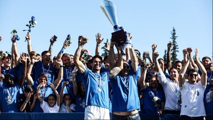 Όλοι οι παίκτες της Κηφισιάς, αλλά και το προπονητικό επιτελείο, με μπλουζάκια που ανέγραφαν «Champions 2025», πήραν από ένα λουλούδι και τα μετάλλιά τους, περνώντας μέσα από μία «αψίδα» που είχαν δημιουργήσει δεκάδες παιδιά κουνώντας σημαιάκια της Κηφισιάς.
