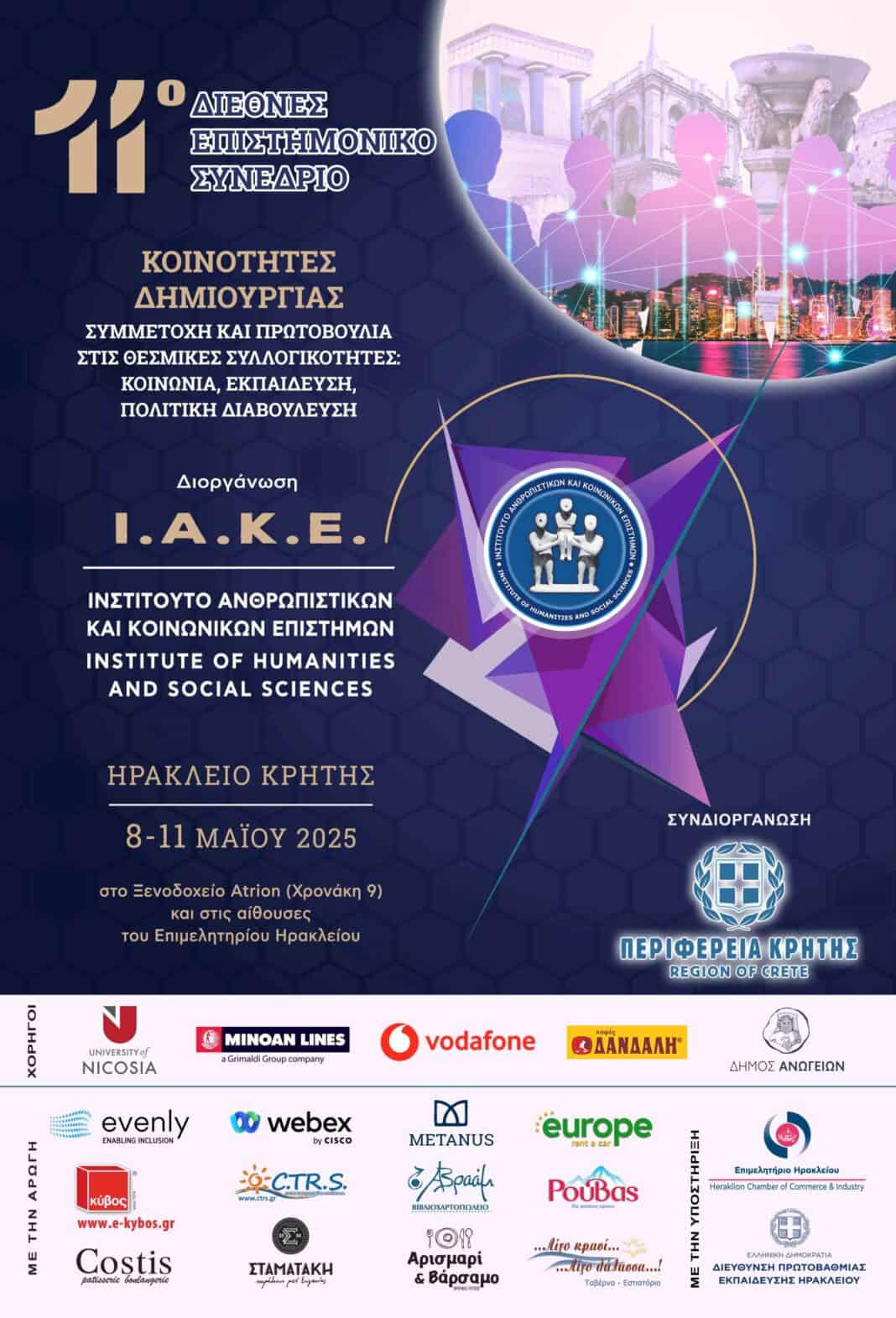Το 11ο Διεθνές Επιστημονικό Συνέδριο που διοργανώνεται από το Ινστιτούτο Ανθρωπιστικών και Κοινωνικών Επιστημών σε συνδιοργάνωση με την Περιφέρεια Κρήτης παρουσιάστηκε χθες σε συνέντευξη τύπου.