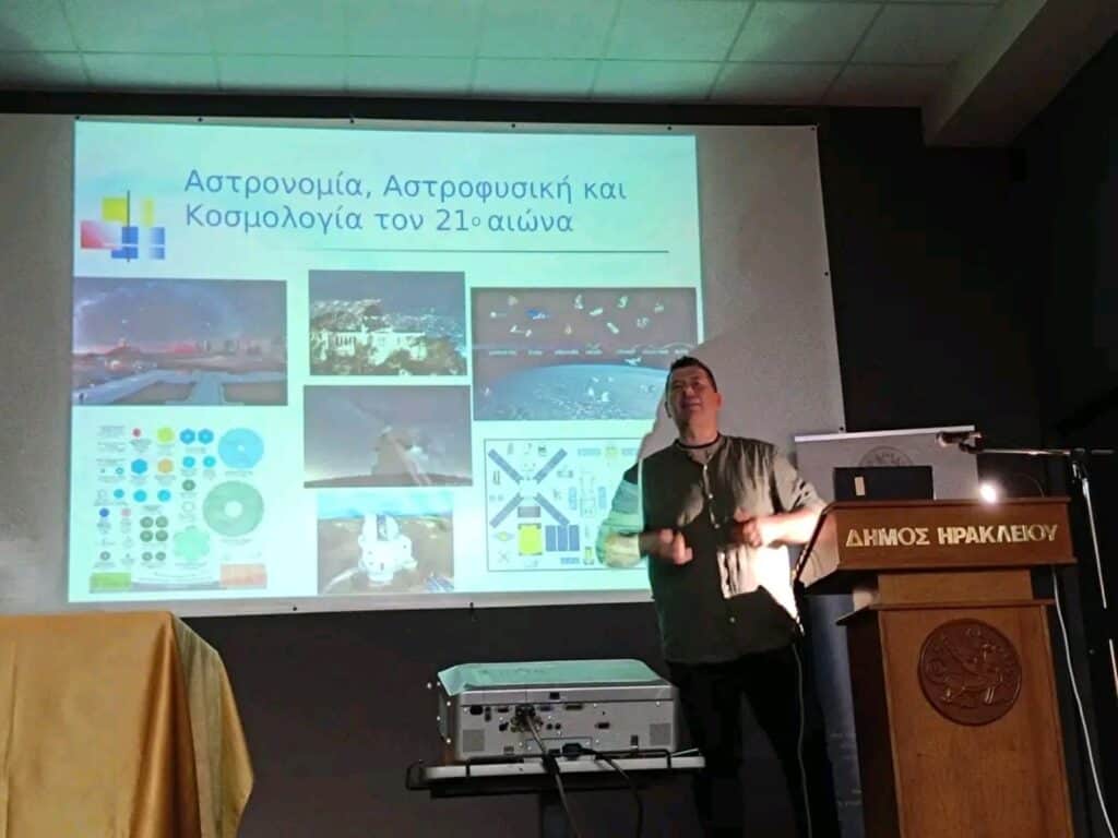 Mε μεγάλη επιτυχία πραγματοποιήθηκε η ομιλία του Διευθυντή Ερευνών του Ινστιτούτου Αστρονομίας, Αστροφυσικής, Διαστημικών Εφαρμογών και Τηλεπισκόπησης(ΙΑΑΔΕΤ) του Εθνικού Αστεροσκοπείου Αθηνών Δρ. Μάνου Σαριδάκη, με θέμα: ‘Ένα ταξίδι στο Σύμπαν”, που διοργάνωσαν ο Δήμος Ηρακλείου και ο Εντεταλμένος Σύμβουλος Νίκος Κονταράκης με το Σύλλογο Φίλων Αστρονομίας Κρήτης, την Τετάρτη 7/5, στην αίθουσα «Μ.Καρέλλης» της οδού Ανδρόγεω.