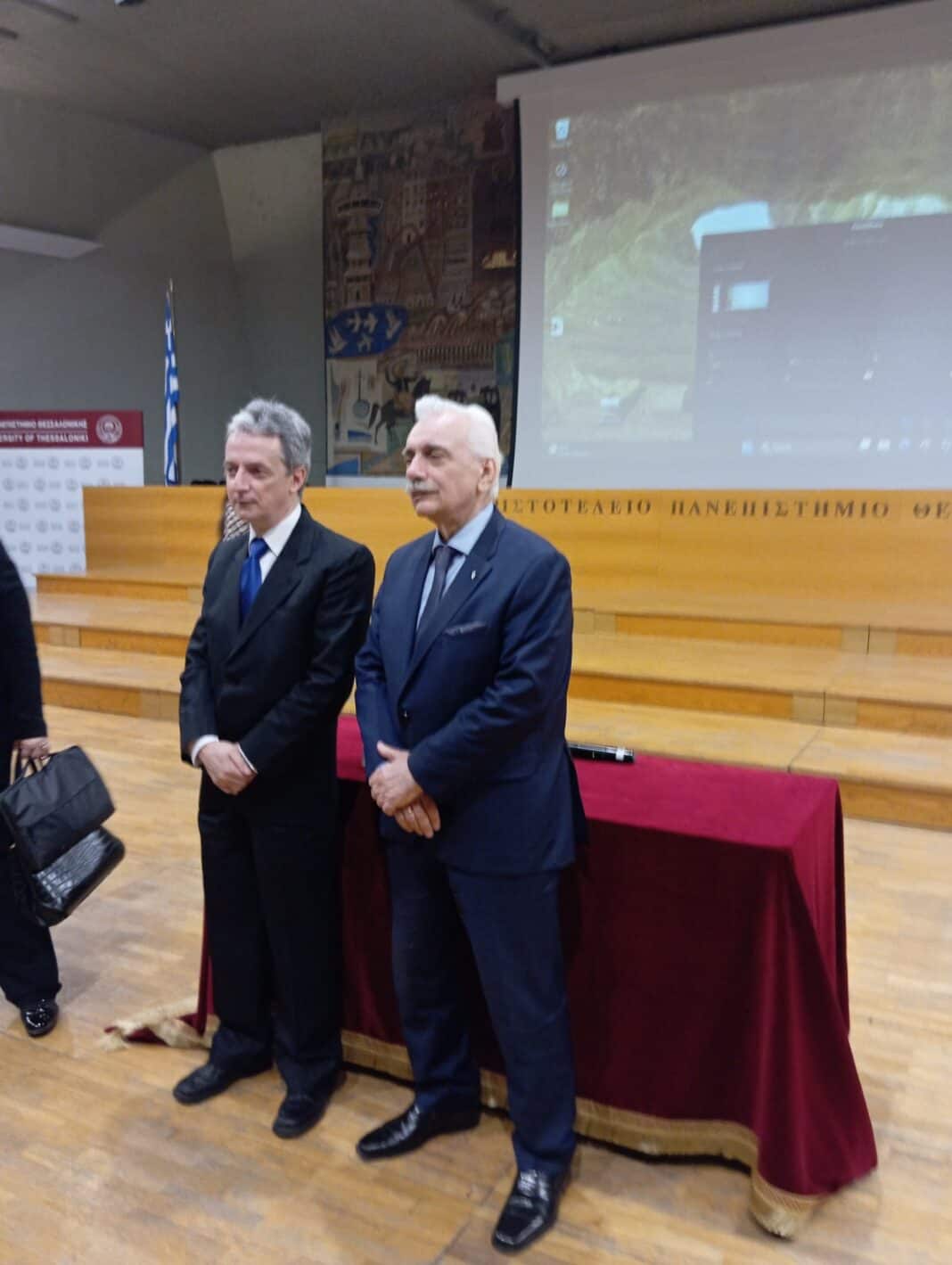 Στο πλαίσιο της επετειακής εκδήλωσης για τα 70 χρόνια από την ίδρυση του Τμήματος Φαρμακευτικής του Αριστοτελείου Πανεπιστημίου Θεσσαλονίκης, η οποία πραγματοποιήθηκε με λαμπρότητα στην αίθουσα Τελετών του Πανεπιστημίου, τιμήθηκε ο Πρόεδρος του Ελληνικού Ερυθρού Σταυρού, Dr. Αντώνιος Αυγερινός, για την πολύτιμη προσφορά του στον τομέα της υγείας και του ανθρωπισμού, παρουσία πλήθους ακαδημαϊκών, φοιτητών, αποφοίτων και εκπροσώπων της φαρμακευτικής κοινότητας, καθώς και εθελοντών του Περιφερειακού Τμήματος Ε.Ε.Σ. Θεσσαλονίκης.