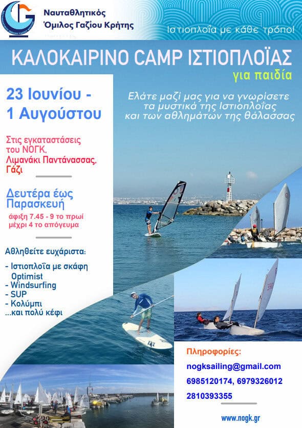 Θες να ενημερωθείς για το Summer Camp του Ν.Ο.Γ.Κ.; Μπορείτε να επικοινωνήσετε μαζί μας για περισσότερες πληροφορίες και εγγραφές στα τηλέφωνα 6985120174, 6979326012, και 2810393355 και στην ηλεκτρονική διεύθυνση nogksailing@gmail.com
