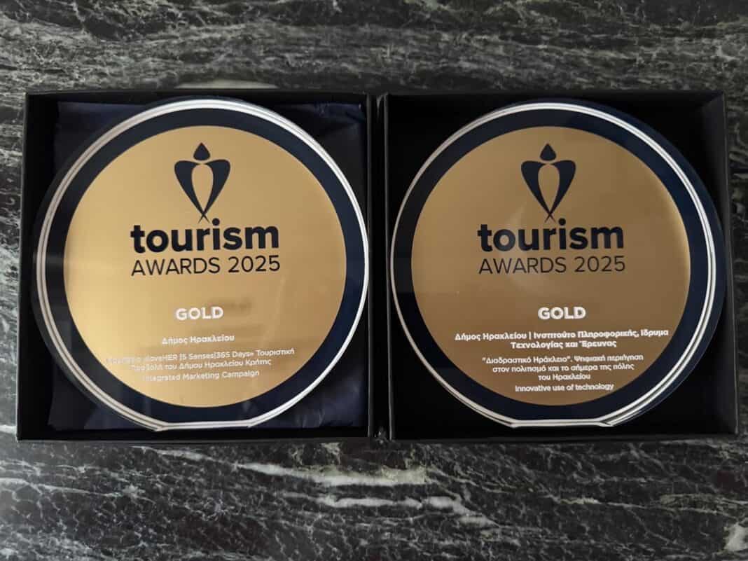 Δύο Χρυσά Βραβεία απέσπασε ο Δήμος Ηρακλείου στην τελετή απονομής των Tourism Awards 2025 αναδεικνύοντας τη δυναμική του ως κορυφαίος τουριστικός προορισμός.