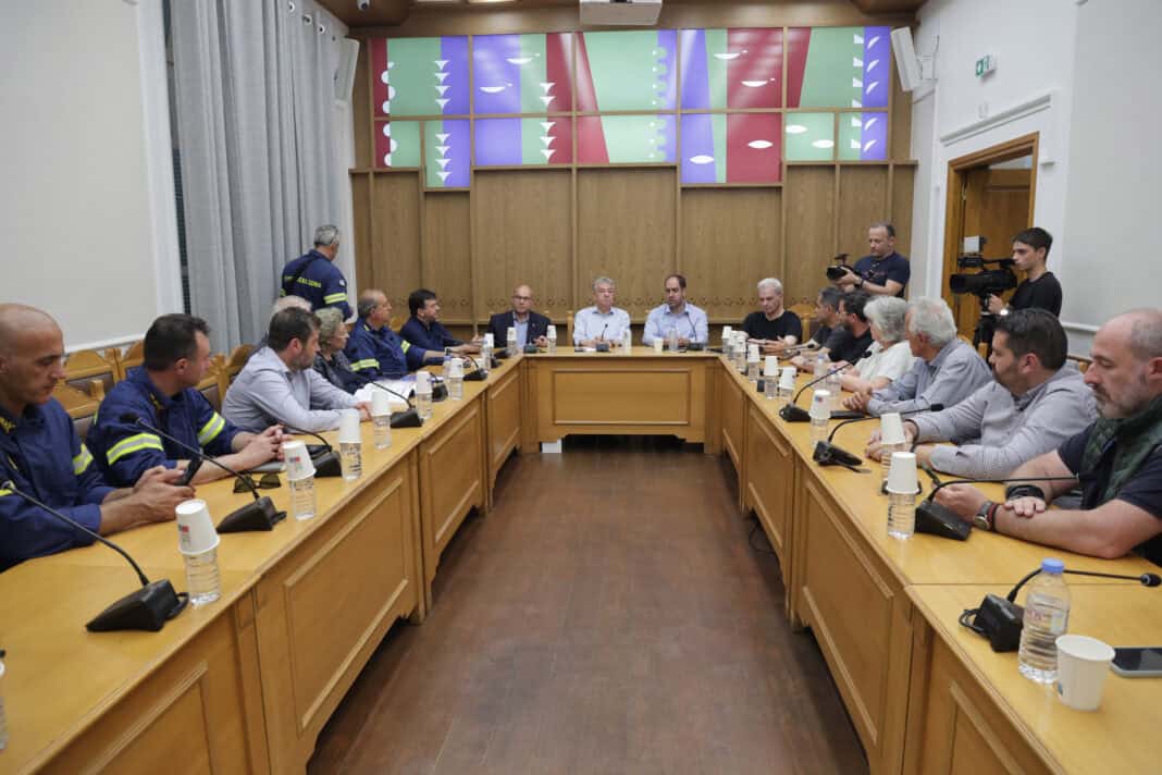 Σύσκεψη πραγματοποιήθηκε χθες στην Περιφέρεια Κρήτης παρουσία του Υπουργού Κλιματικής Κρίσης και Πολιτικής Προστασίας Γιάννη Κεφαλογιάννη και του Περιφερειάρχη Κρήτης Σταύρου Αρναουτάκη, με αφορμή τον σεισμό που σημειώθηκε νωρίς το πρωί στη θαλάσσια περιοχή της ανατολικής Κρήτης.