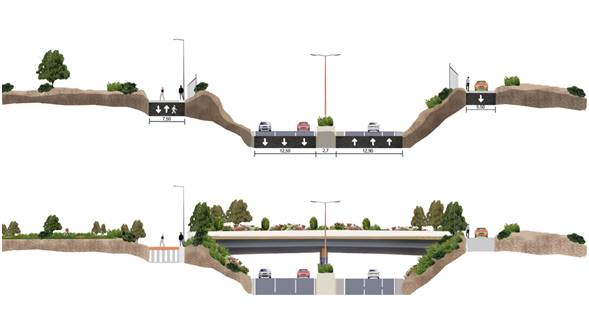 - Στον εξαρχής του έργου σχεδιασμό και την εγκατάσταση ηχοπετασμάτων για την προστασία από τον κυκλοφοριακό θόρυβο των παρόδιων κατοικιών της πόλης (βλ. αρ. 11.3)