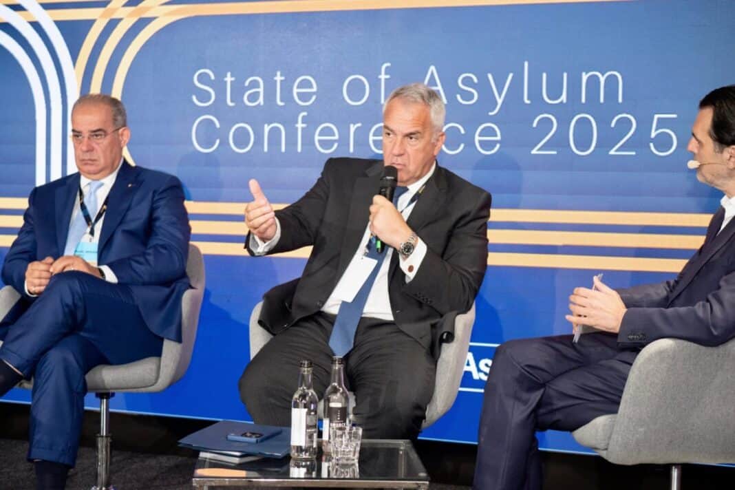 Αναφερόμενος στο νέο Ευρωπαϊκό Σύμφωνο για τη Μετανάστευση και το Άσυλο, που τίθεται σε εφαρμογή τον Ιούνιο του 2026, έκανε λόγο για «ένα εξαιρετικά απαιτητικό νομοθετικό και διοικητικό έργο», με στόχο την ταχύτερη εκδίκαση αιτημάτων και τη σύνδεση της ολοκλήρωσης με άμεσες επιστροφές. Επισήμανε ότι η αποτελεσματικότητα του Συμφώνου θα κριθεί από μετρήσιμα αποτελέσματα και όχι από γενικές διακηρύξεις: «Πόσο γρήγορα εκδίδονται οι αποφάσεις ασύλου, πόσες είναι εθελοντικές ή αναγκαστικές επιστροφές, τι συμβαίνει σε πρώτο και δεύτερο βαθμό – αυτοί είναι οι δείκτες που θα δείξουν την πραγματική πρόοδο».