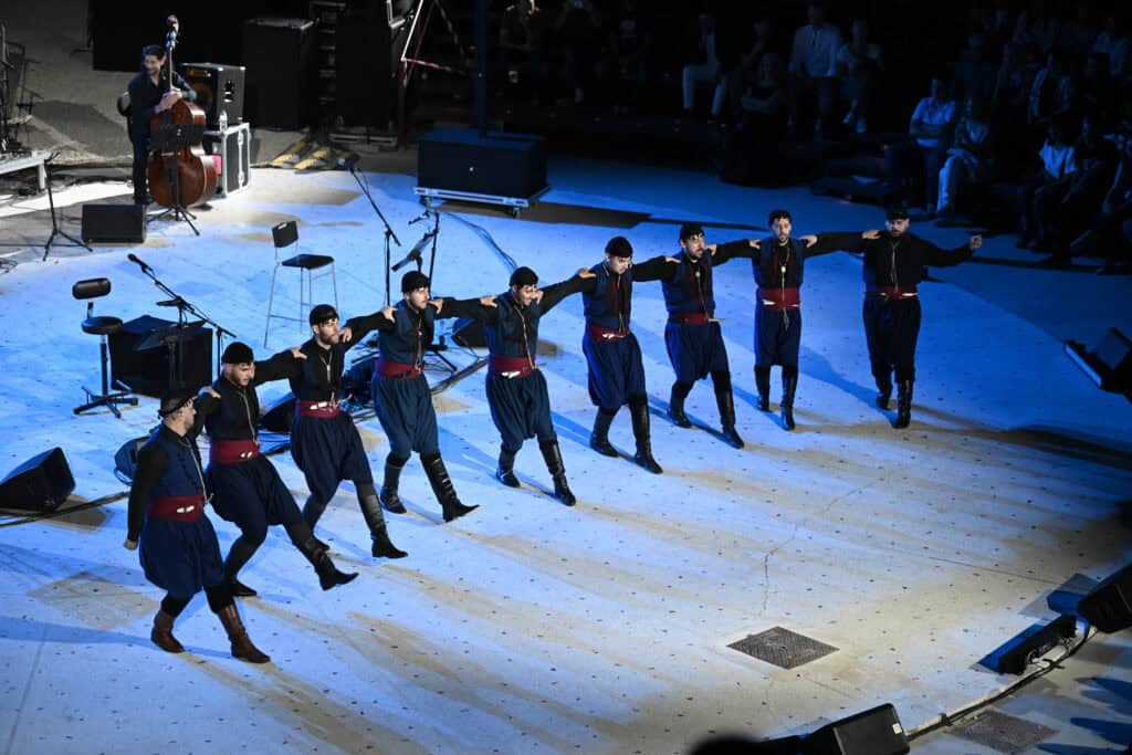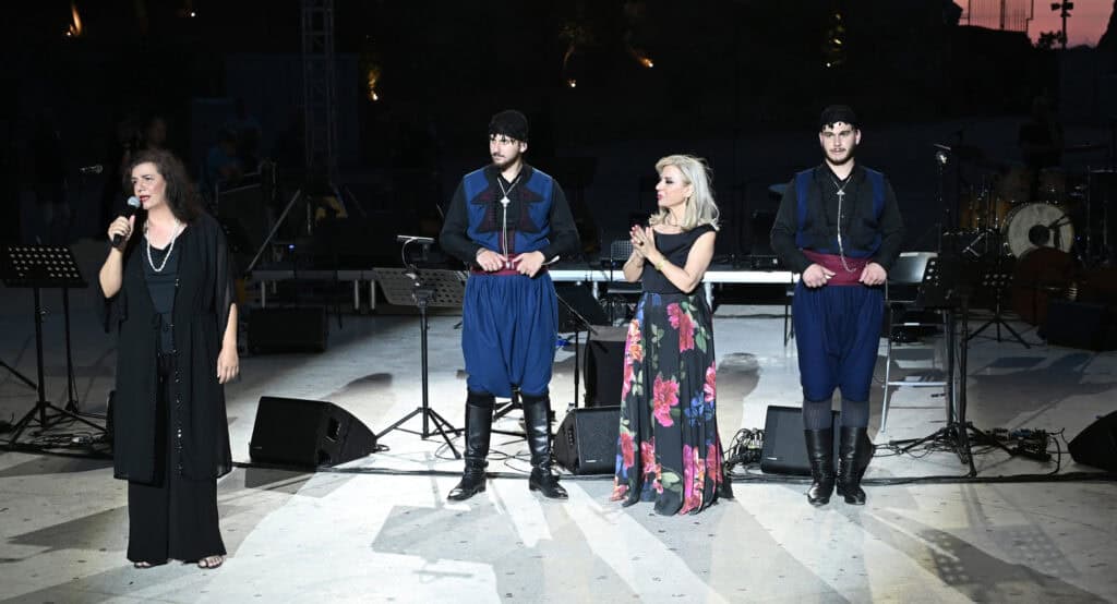 Τους τρεις ερμηνευτές συνόδευσε μια εκπληκτική πολυμελή ορχήστρα από δεξιοτέχνες μουσικούς παραδοσιακών και σύγχρονων οργάνων. Στο πιάνο στη μουσική και ενορχηστρωτική επιμέλεια ήταν η Τατιάνα Παπαγεωργίου. Ο Χορευτικός Όμιλος Βασσάλου με λεβέντες χορευτές και λυγερόκορμες χορεύτριες χόρεψαν στους ρυθμούς της Κρήτης, ξεσηκώνοντας το κοινό, που χτυπούσε ρυθμικά τα χέρια του. Πολλοί ήταν εκείνοι που βρήκαν λίγο χώρο για να χορέψουν στις κερκίδες.