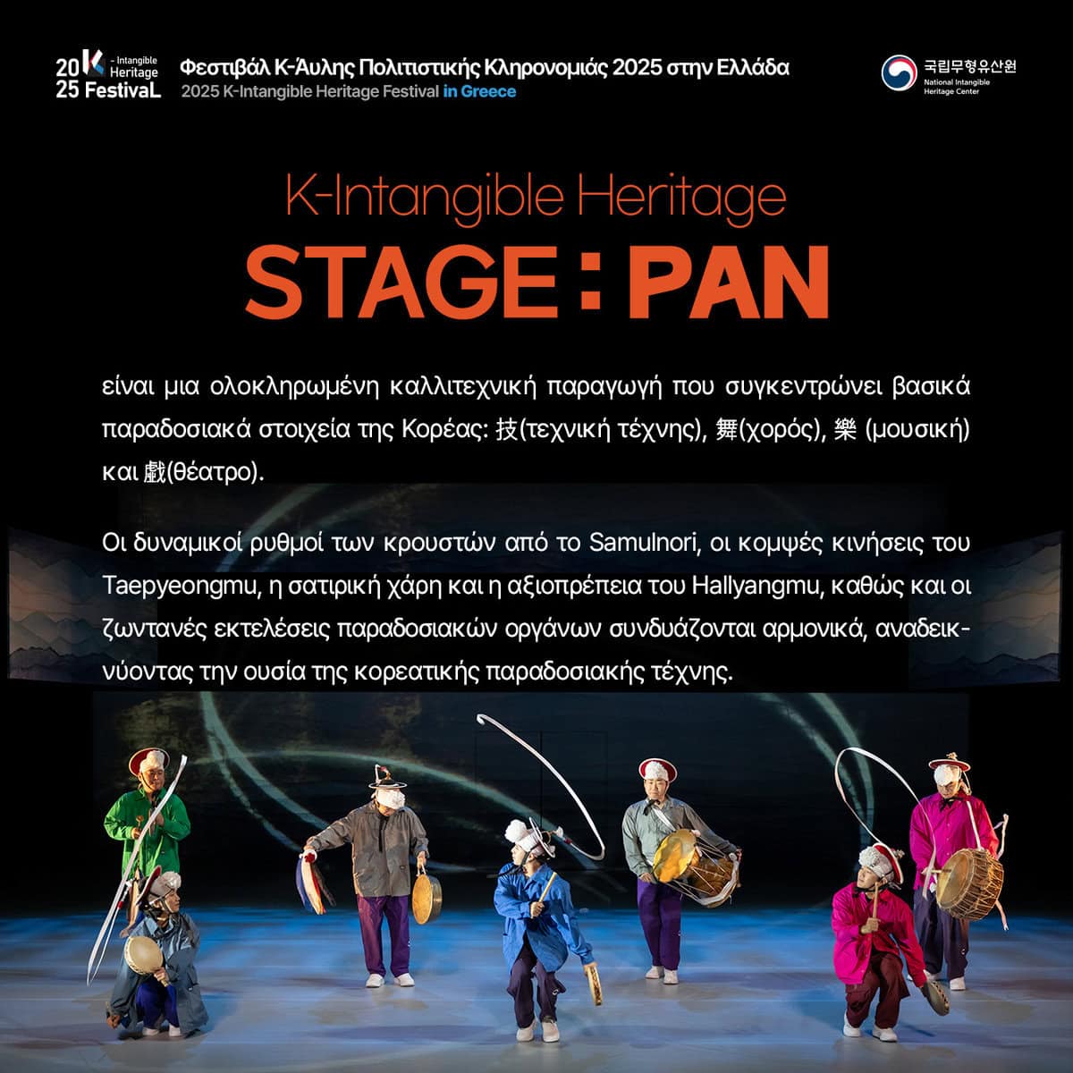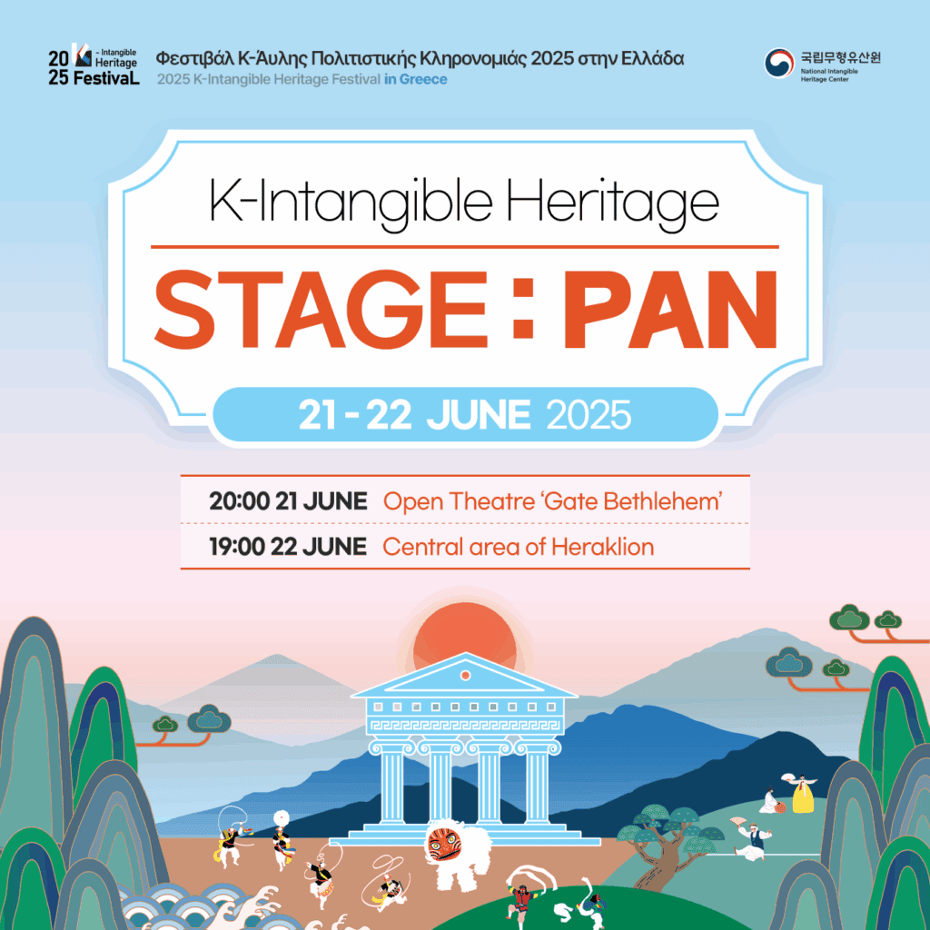 20:00 Μουσικοχορευτική παράσταση με το «The National Intangible Heritage Center» από την Κορέα