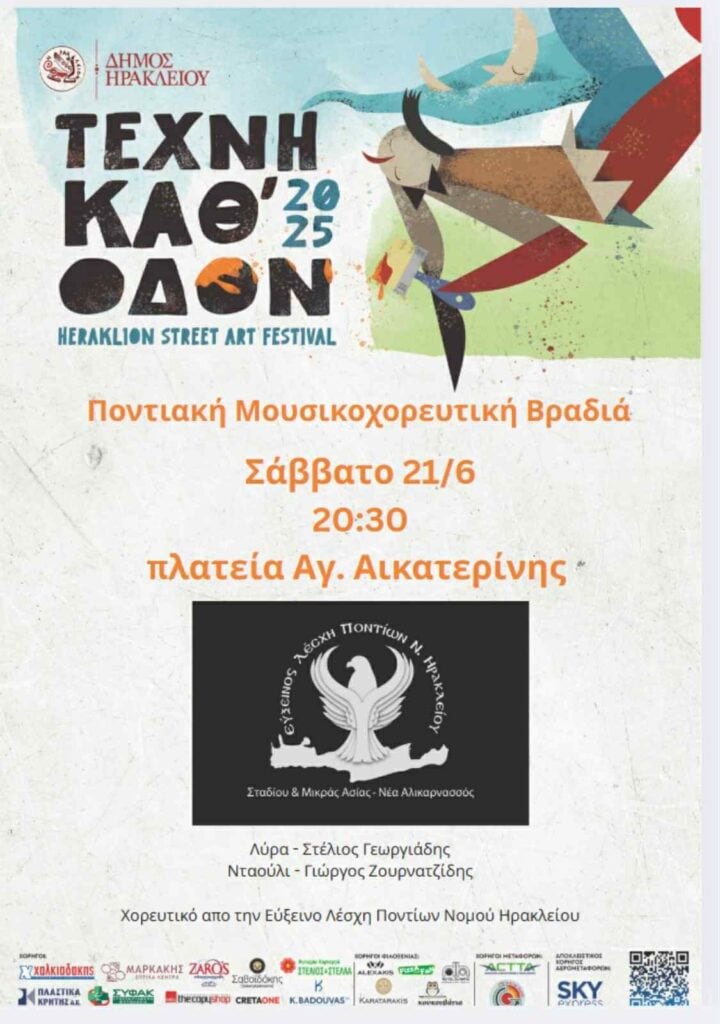 Δείτε το πρόγραμμα του Φεστιβάλ σε e-book εδώ: https://www.heraklionculture.gr/wp-content/uploads/2025/06/10th-Steet-Art-Festival-2025.pdf