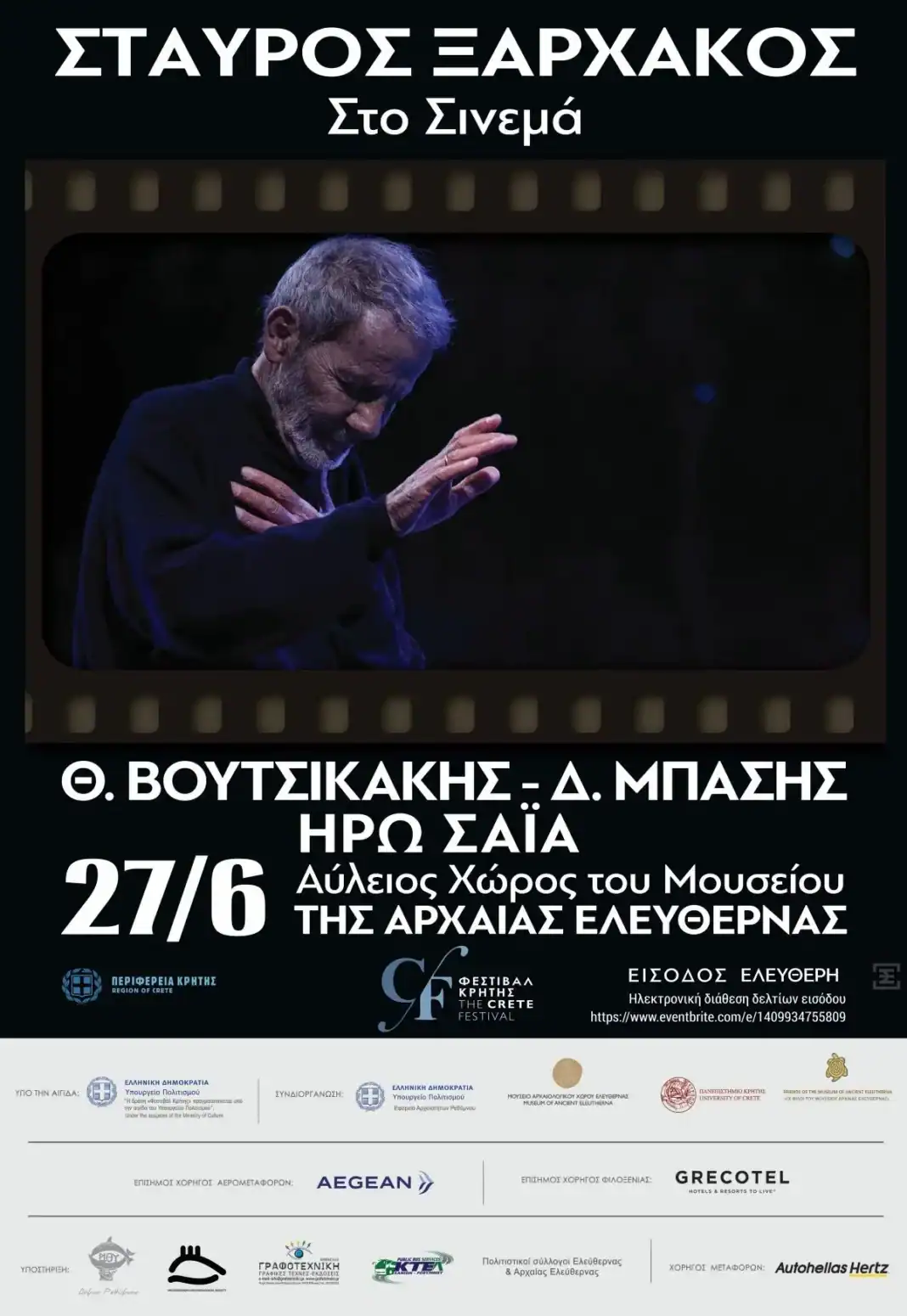 Το φημισμένο φεστιβάλ της Περιφέρειας Κρήτης, ο επιτυχημένος θεσμός στο νησί μας ανοίγει και φέτος τις πύλες του την Παρασκευή 27 Ιουνίου 2025, με τον Σταύρο Ξαρχάκο και τους συνεργάτες του καλλιτέχνες, Θοδωρή Βουτσικάκη, Δημήτρη Μπάση και την Ηρώ Σαΐα. Θεσμικοί εκπρόσωποι και πολίτες θα έχουν την ευκαιρία να απολαύσουν μια μοναδική συναυλία στον αύλειο χώρο του Μουσείου αρχαίας Ελεύθερνας και να χειροκροτήσουν τον μεγάλο δημιουργό και τους ταλαντούχους συνεργάτες του καλλιτέχνες, μουσικούς.