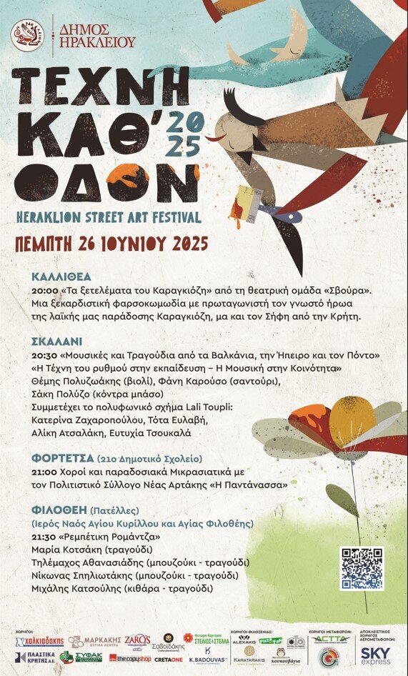 Δείτε το πρόγραμμα του Φεστιβάλ σε e–book εδώ: https://www.heraklionculture.gr/wp-content/uploads/2025/06/10th-Steet-Art-Festival-2025.pdf