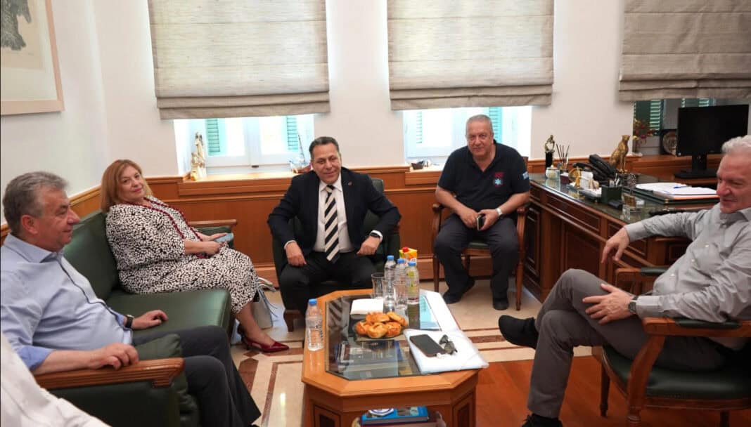 Συνάντηση με τον Πρόεδρο του Εθνικού Κέντρου Άμεσης Βοήθειας (ΕΚΑΒ) Γιώργο Χαραλάμπους είχε χθες Πέμπτη ο Περιφερειάρχης Κρήτης Σταύρος Αρναουτάκης.