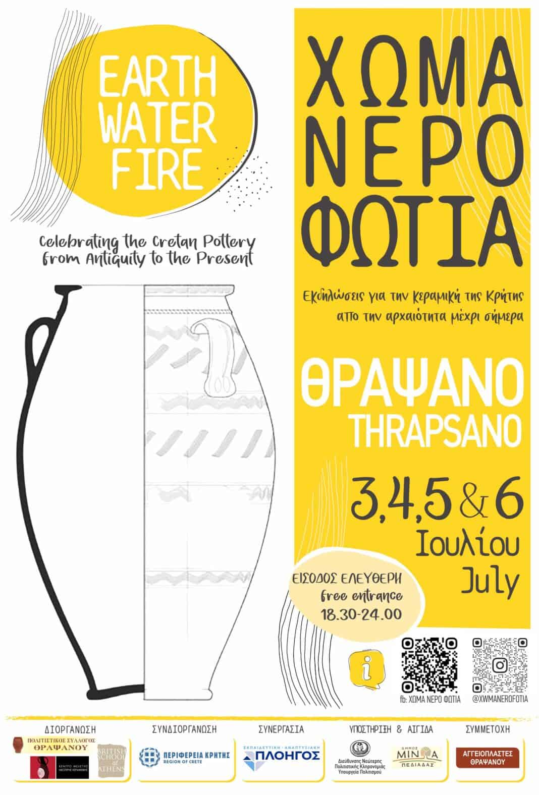 Ο Πολιτιστικός Σύλλογος Θραψανού σε συνεργασία με τo Κέντρο Μελέτης Νεώτερης Κεραμεικής, τη Βρετανική Σχολή Αθηνών, το Υπουργείο Πολιτισμού την υποστήριξη της ΔΗΝΕΠΟΚ(Δ/νση Νεώτερης Πολιτιστικής Κληρονομιάς) τη συμμετοχή των Αγγειοπλαστών του Θραψανού, διοργανώνει σειρά πολιτιστικών εκδηλώσεων εστιασμένων στην Κρητική παραδοσιακή κεραμική και τον πολιτισμό της Κρήτης. , με την στήριξη της Περιφέρειας Κρήτης υπό την αιγίδα του Δήμου Μινώα Πεδιάδας.