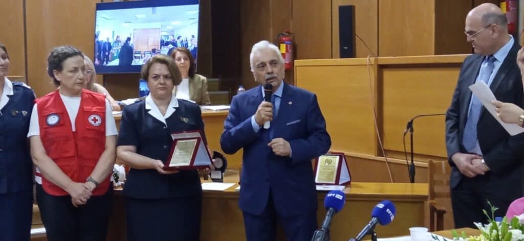 Ο Πρόεδρος του Ελληνικού Ερυθρού Σταυρού, Dr. Αντώνιος Αυγερινός, στον χαιρετισμό του, τόνισε πως η δημιουργία Σταθμού Πρώτων Βοηθειών στο Εφετείο Αθηνών αποδεικνύει έμπρακτα τη δέσμευση του Ελληνικού Ερυθρού Σταυρού για άμεση και ποιοτική παροχή Πρώτων Βοηθειών στους εκατοντάδες επισκέπτες του Εφετείου.