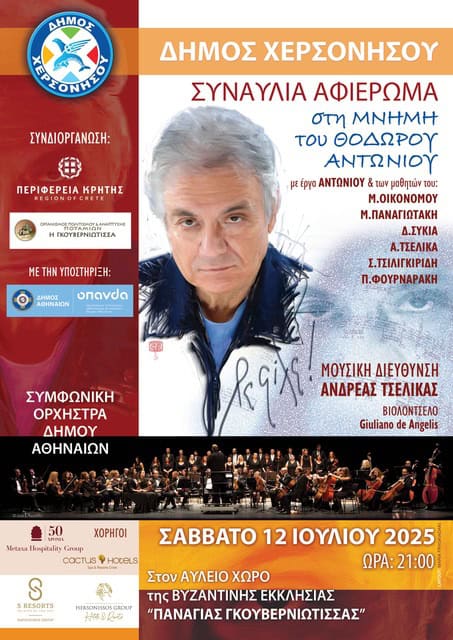 Μία σημαντική μουσική εκδήλωση που είναι αφιερωμένη στον διεθνώς αναγνωρισμένο συνθέτη και μαέστρο Θόδωρο Αντωνίου θα έχει την ευκαιρία να παρακολουθήσει το μουσικόφιλο κοινό το Σάββατο 12 Ιουλίου στις 21:00 στον ιστορικό χώρο της Μονής Παναγία Γκουβερνιώτισσα στις Ποταμιές του δήμου Χερσονήσου.