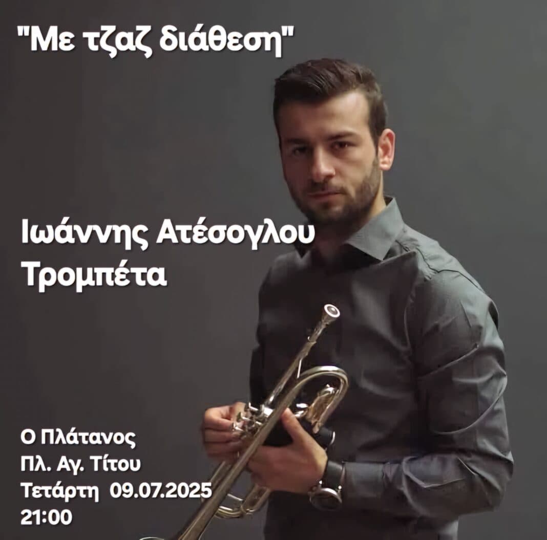 Οι …jazz βραδιές ξεκινούν την Τετάρτη 9 Ιουλίου, στις 21:00 με τον Ιωάννη Ατέσογλου στην τρομπέτα να υπόσχεται μία μοναδική βραδιά.