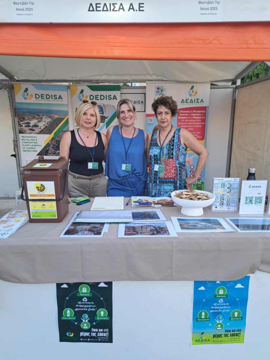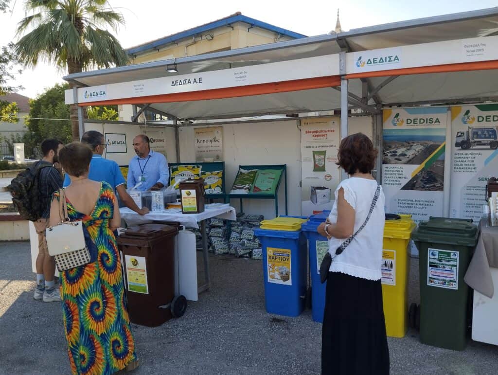 Η ΔΕΔΙΣΑ A.E. (OTA) συμμετείχε με ενημερωτικό περίπτερο, στο οποίο μικροί και μεγάλοι επισκέπτες είχαν την ευκαιρία να ενημερωθούν από στελέχη του φορέα για θέματα που αφορούν τη σωστή διαχείριση των απορριμμάτων, την επαναχρησιμοποίηση υλικών, τη σημασία της πρόληψης παραγωγής αποβλήτων, αλλά και τις πρακτικές ανακύκλωσης και κομποστοποίησης. Παράλληλα, παρουσιάστηκε το έργο και οι υπηρεσίες του Εργοστασίου Μηχανικής Ανακύκλωσης και Κομποστοποίησης (ΕΜΑΚ) Χανίων.